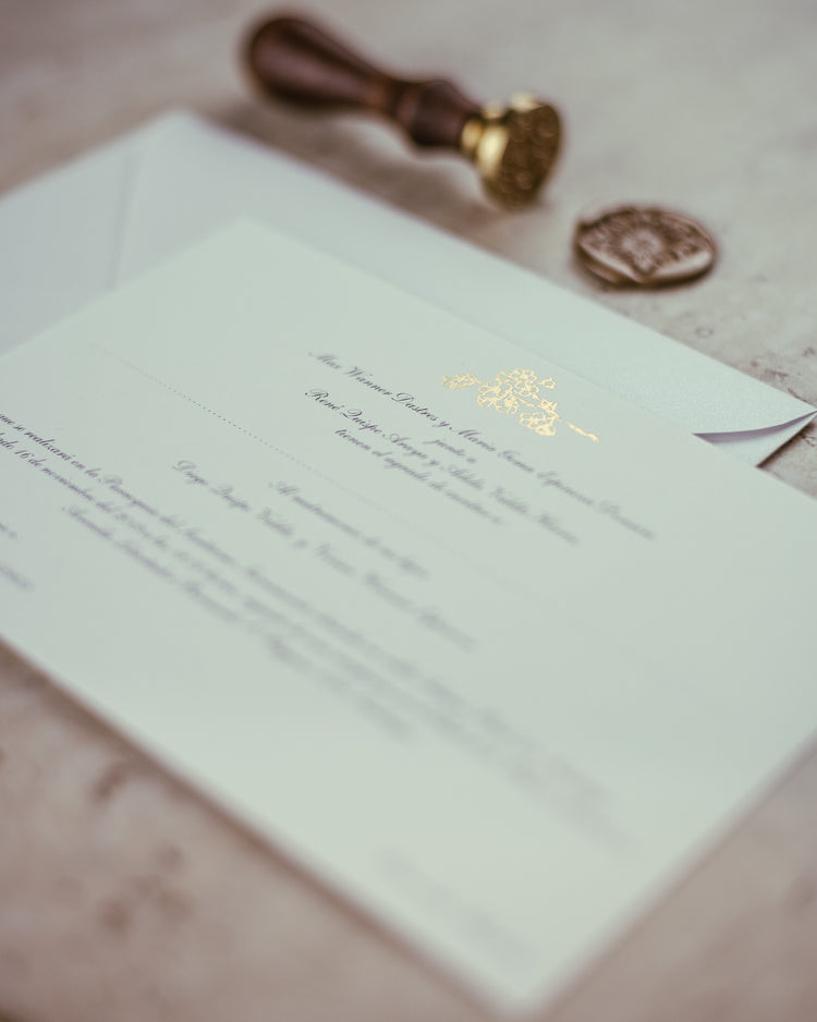 Invitaciones de matrimonio en formato tradicional, impresas en papel y pensadas para quienes buscan una presentación clásica, elegante y atemporal.