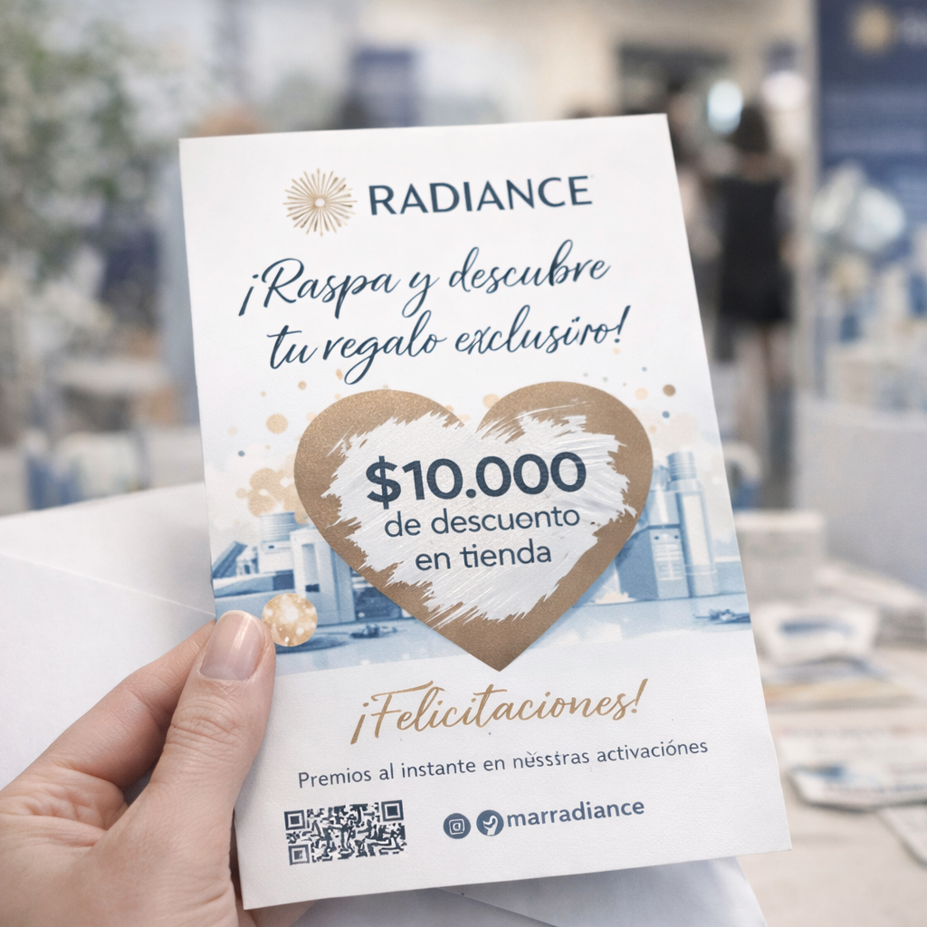 Fabricamos áreas raspables mediante serigrafía, con impresión unitaria o variable, ideales para descuentos, códigos, premios o mensajes sorpresa.Circulares, especiales o con forma: tú eliges el impacto, nosotros la técnica.