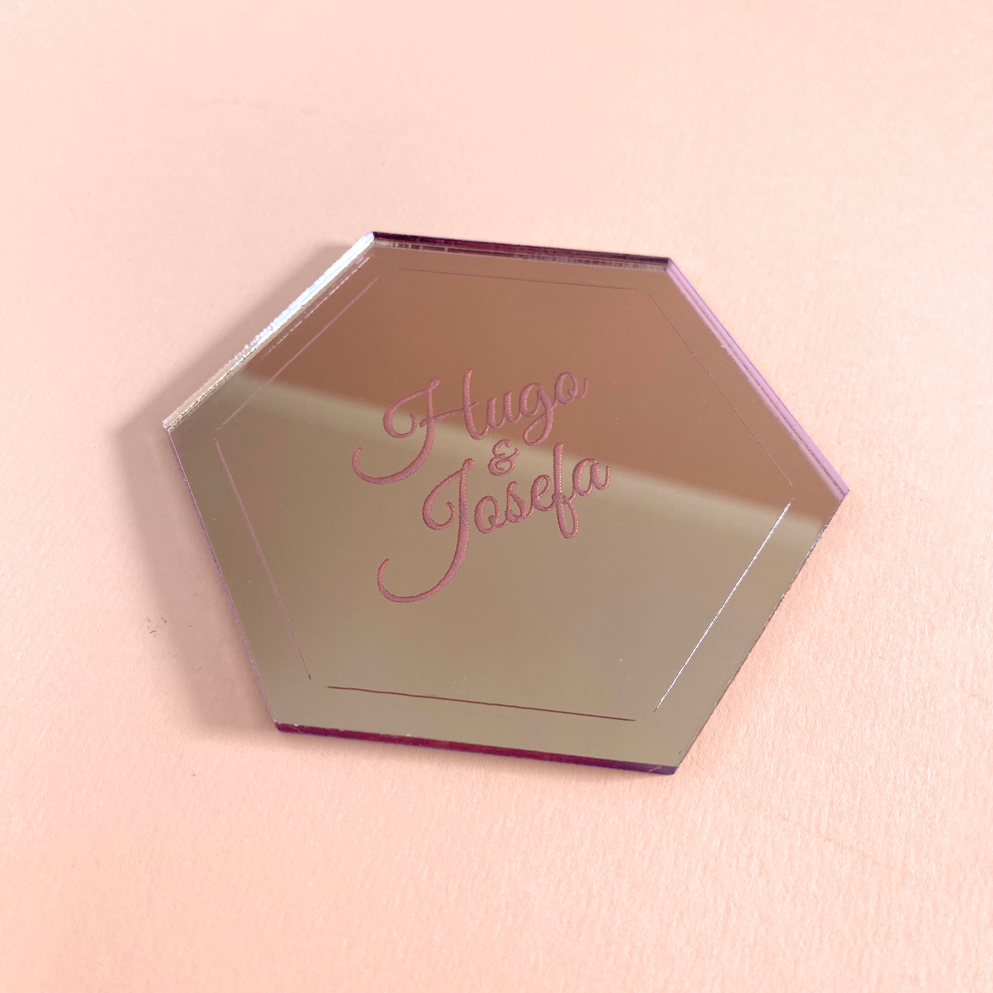 Disponibles en distintos tipos de acrílico, como transparente grabado, foggy grabado, blanco con grabado y tinta negra, espejo dorado, espejo rose gold y espejo bronce, adaptándose a diferentes estilos decorativos. También puedes elegir entre varias formas: circular, hexagonal o cuadrada con esquinas redondeadas.